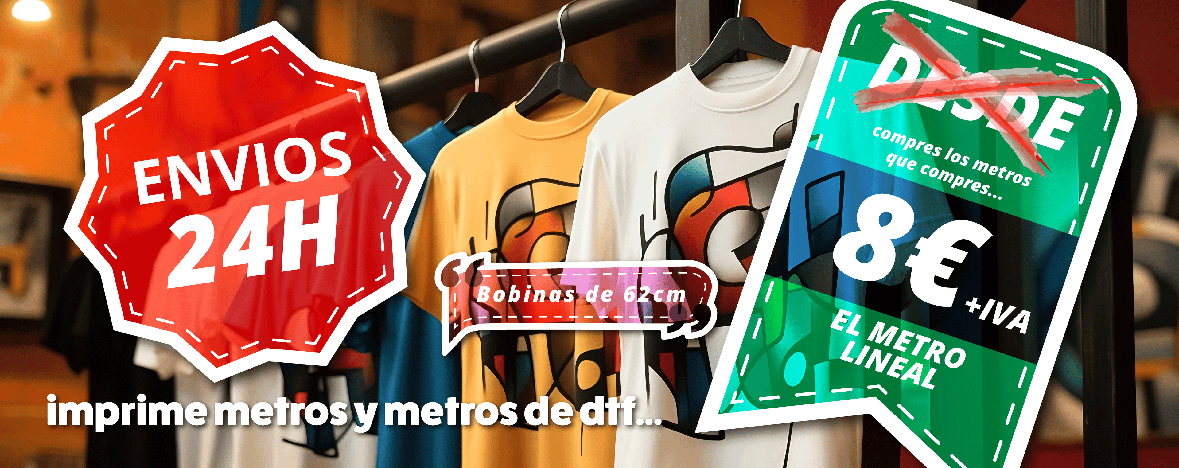 -Passar o dtf com uma prensa térmica a cerca de 5-6 bar de pressão e durante 12 segundos a uma temperatura de 155º. O filme é removido a quente após 5 segundos.